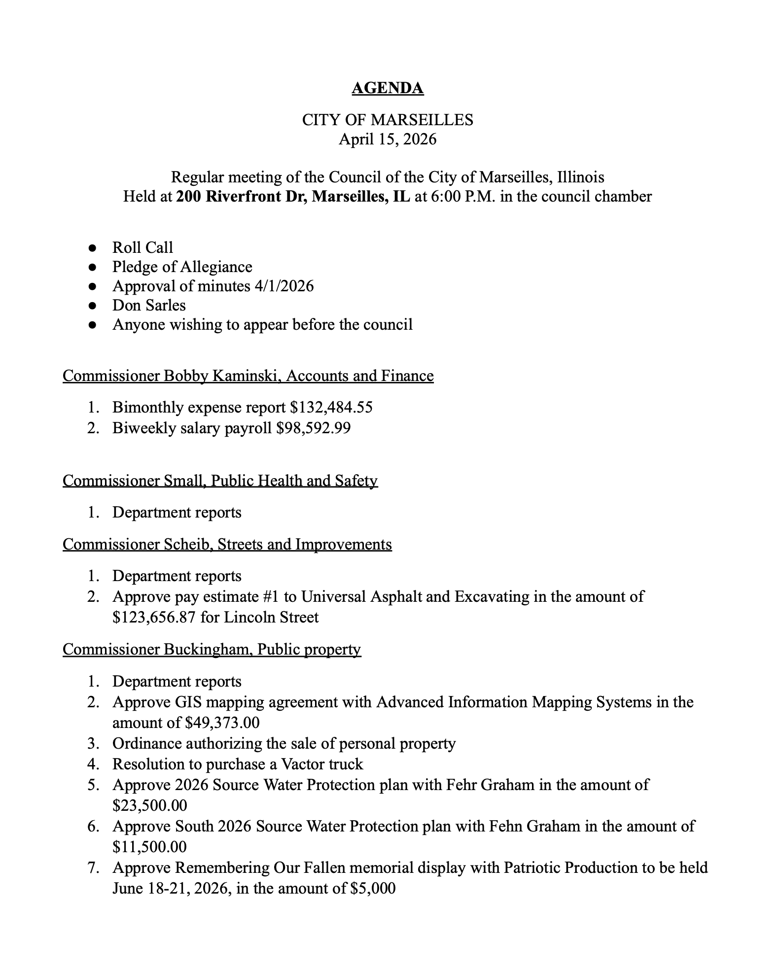 City Council Meeting Agenda 4/15/26