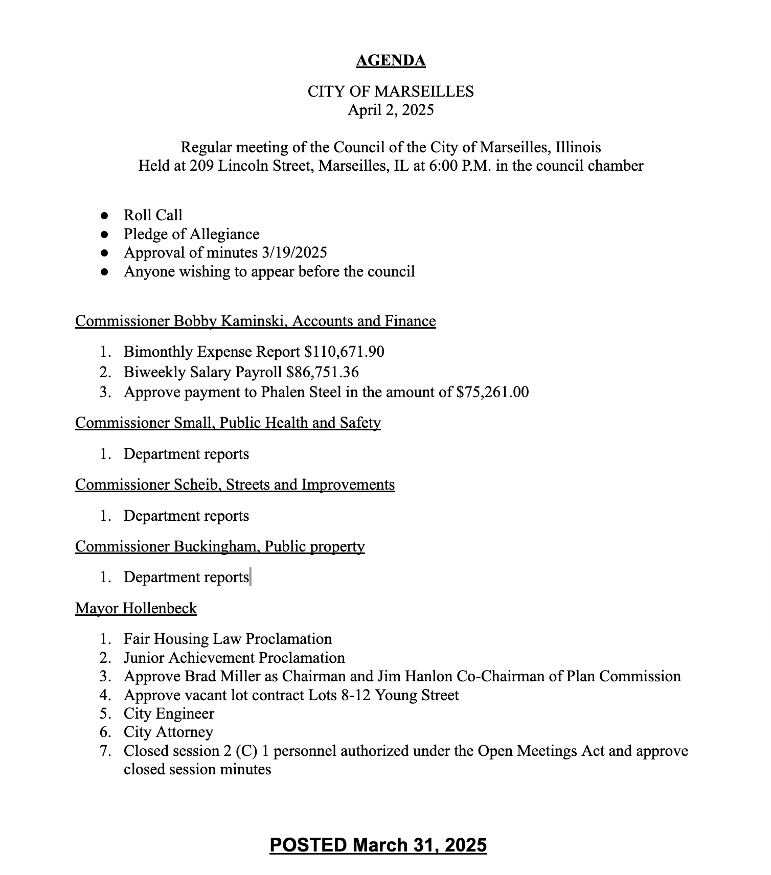 MARSEILLES PLAN COMMISSION/ZONING BOARD OF APPEALS AGENDA