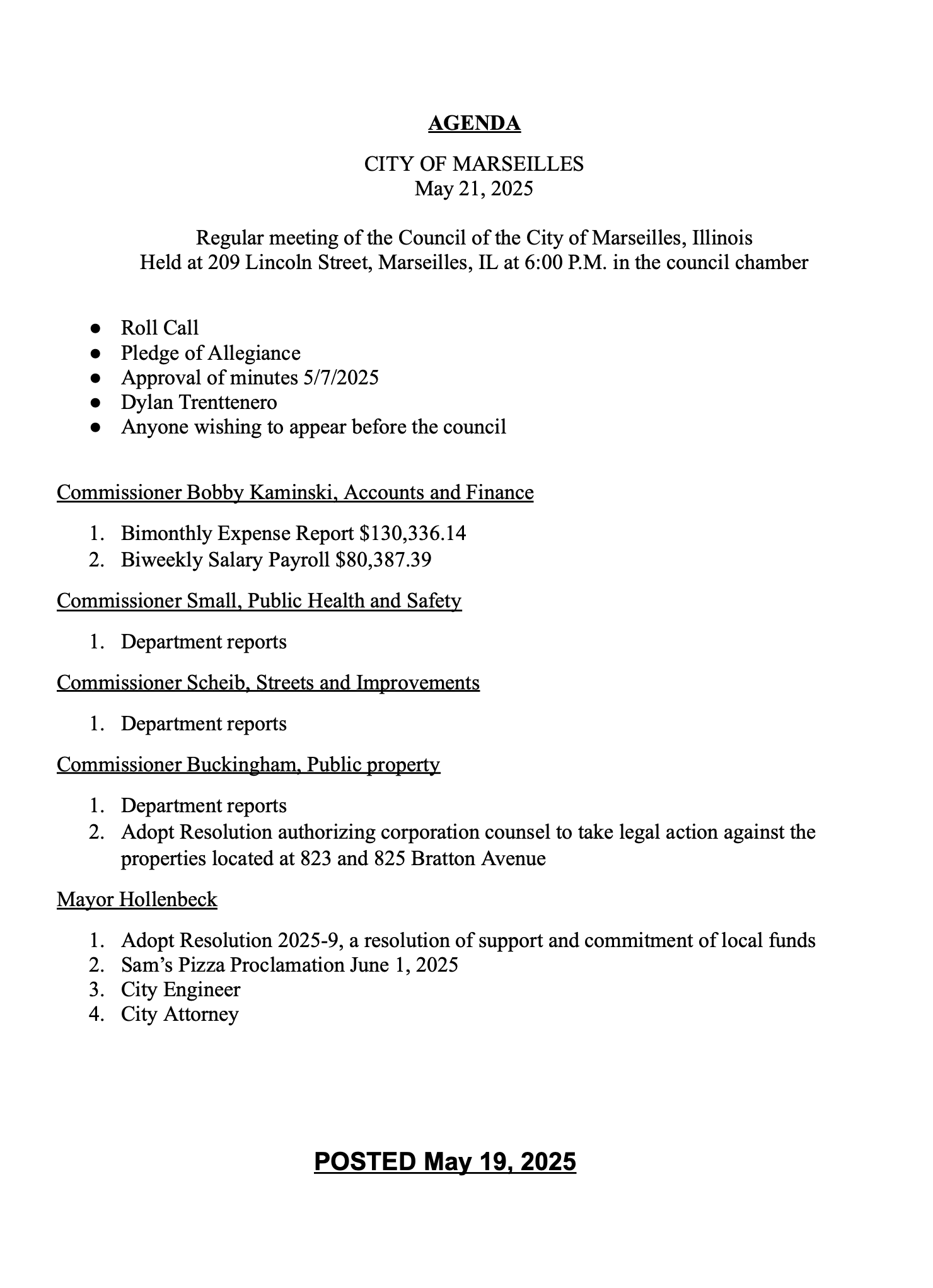 MARSEILLES PLAN COMMISSION/ZONING BOARD OF APPEALS AGENDA