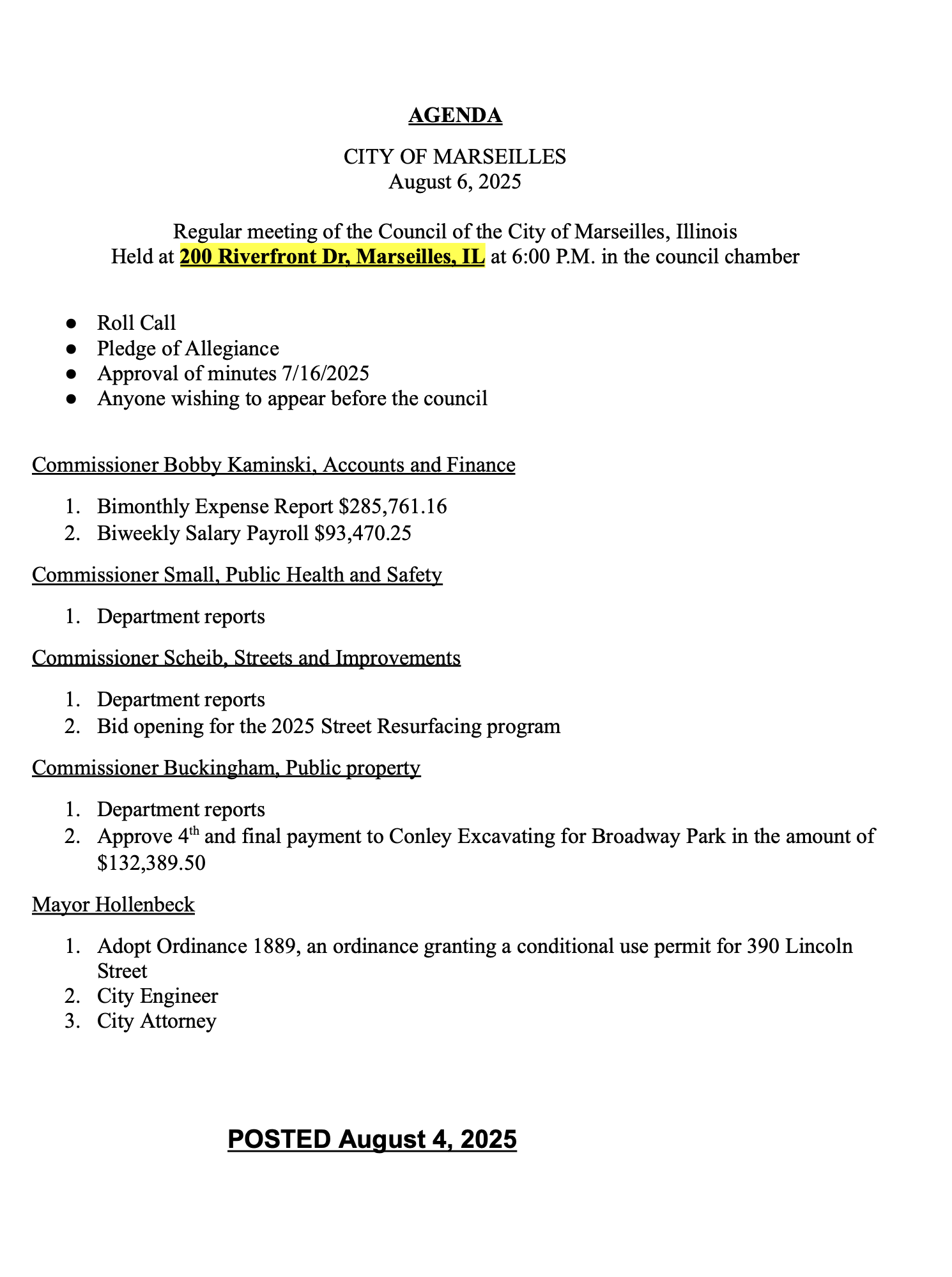 City Council Meeting Agenda August 6, 2025