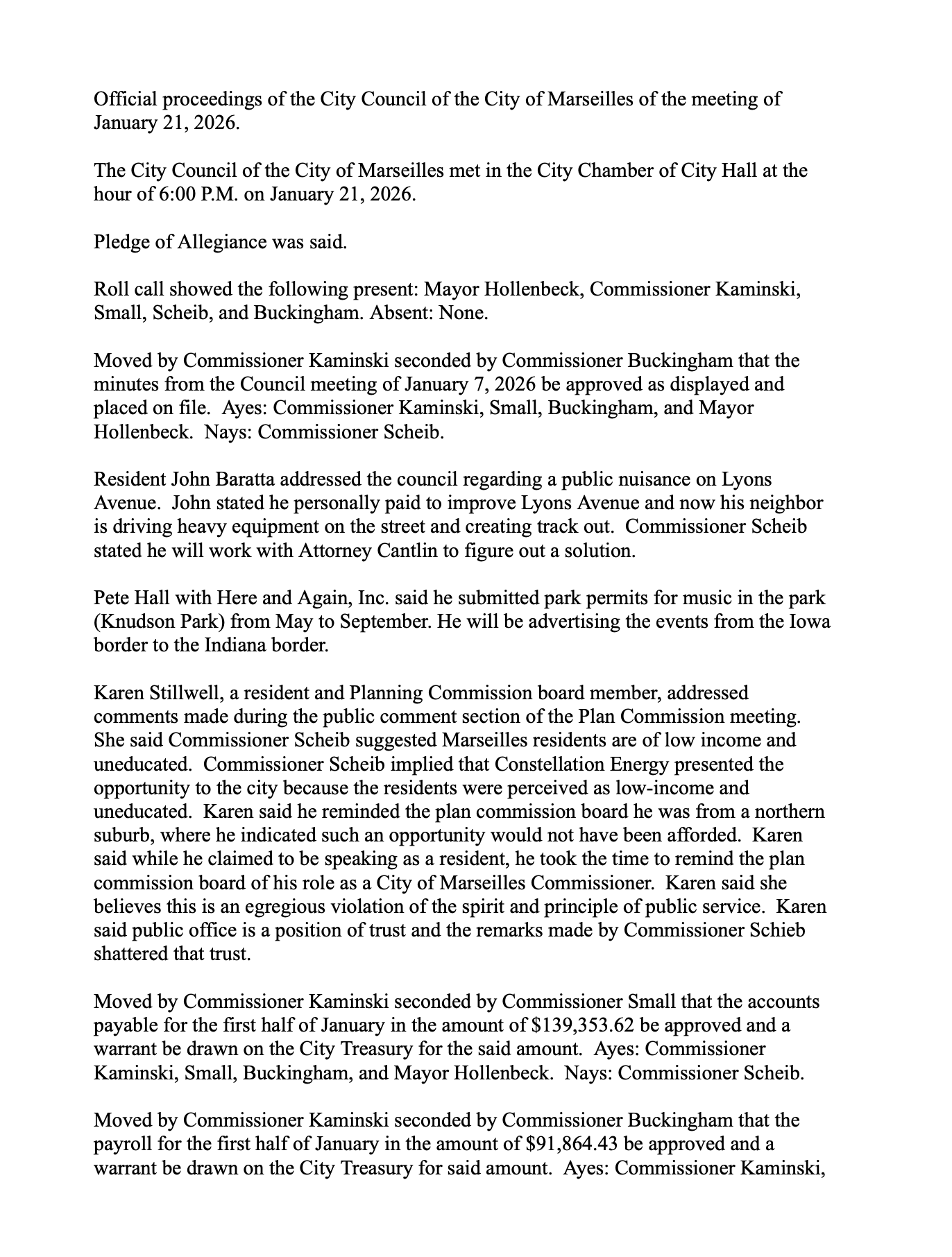 City Council Meeting Minutes 1/21/26