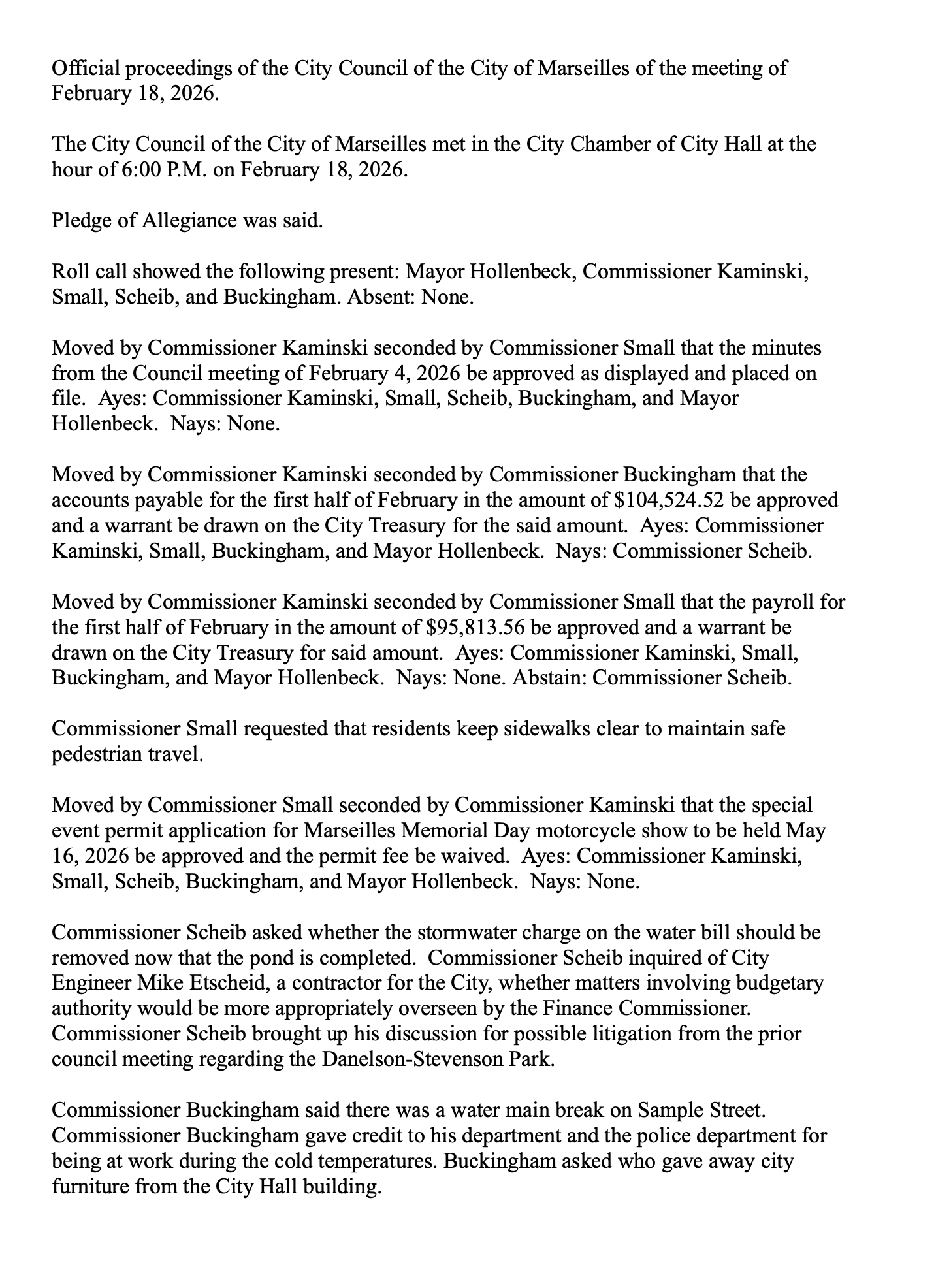 City Council Meeting Minutes 2/18/26