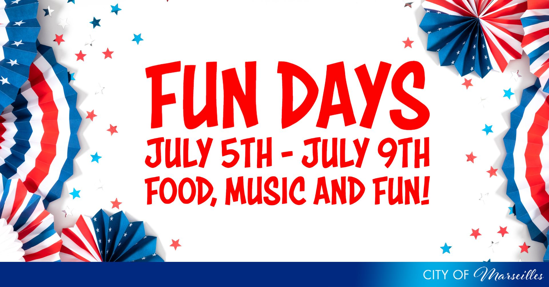 1pm: Fun Days Parade hosted by the Rotary Club. Line-up at 12 Noon at Marseilles Elementary School. Step-Off at 1pm. Parade Route down Broadway St to Commercial St to the Ball Diamonds. Join your Parade Marshall Hank Roe! Sign up by email @ marseillesrotary5313@gmail.com, or just join the lineup that day