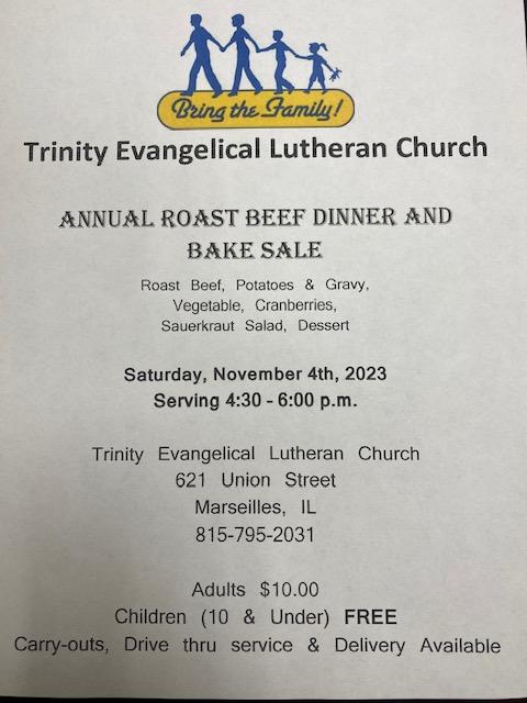 Trinity Evangelical Lutheran Church Roast Beef Dinner & Bake Sale