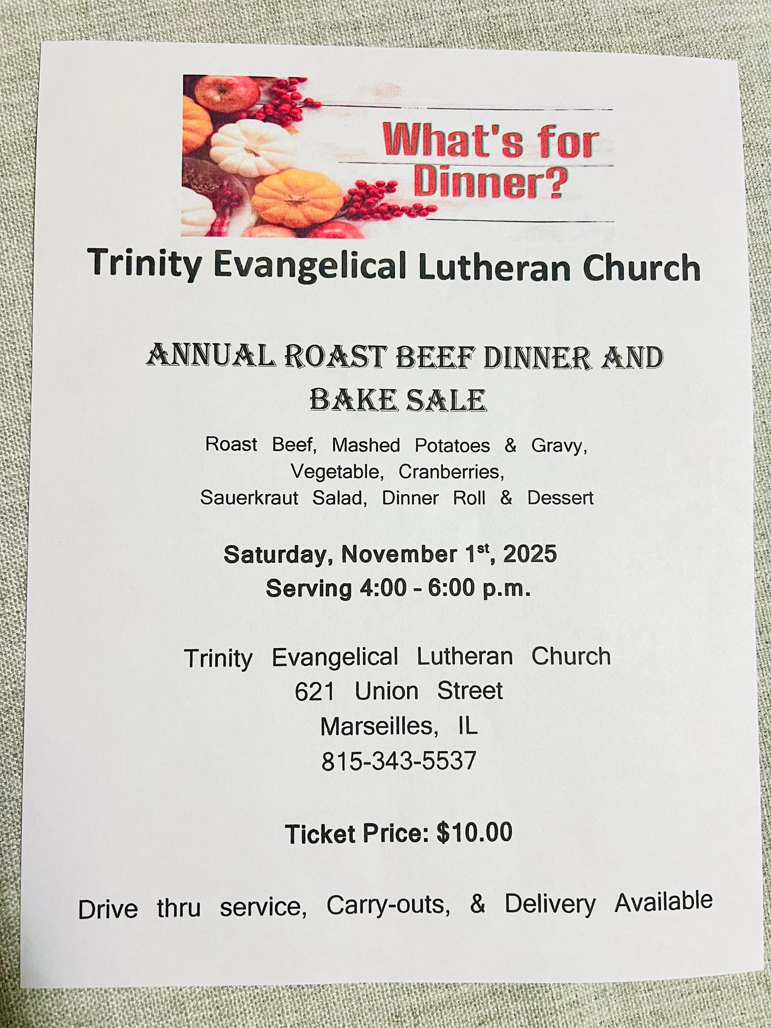 Trinity Lutheran Church Marseilles Annual Roast Beef Dinner